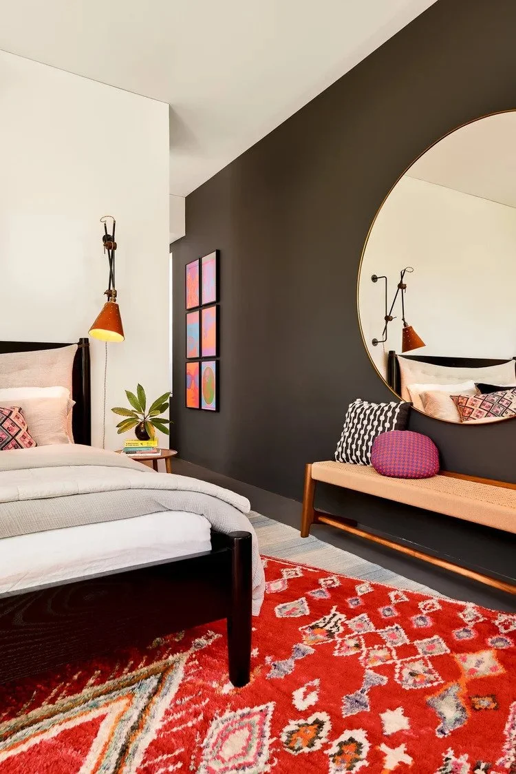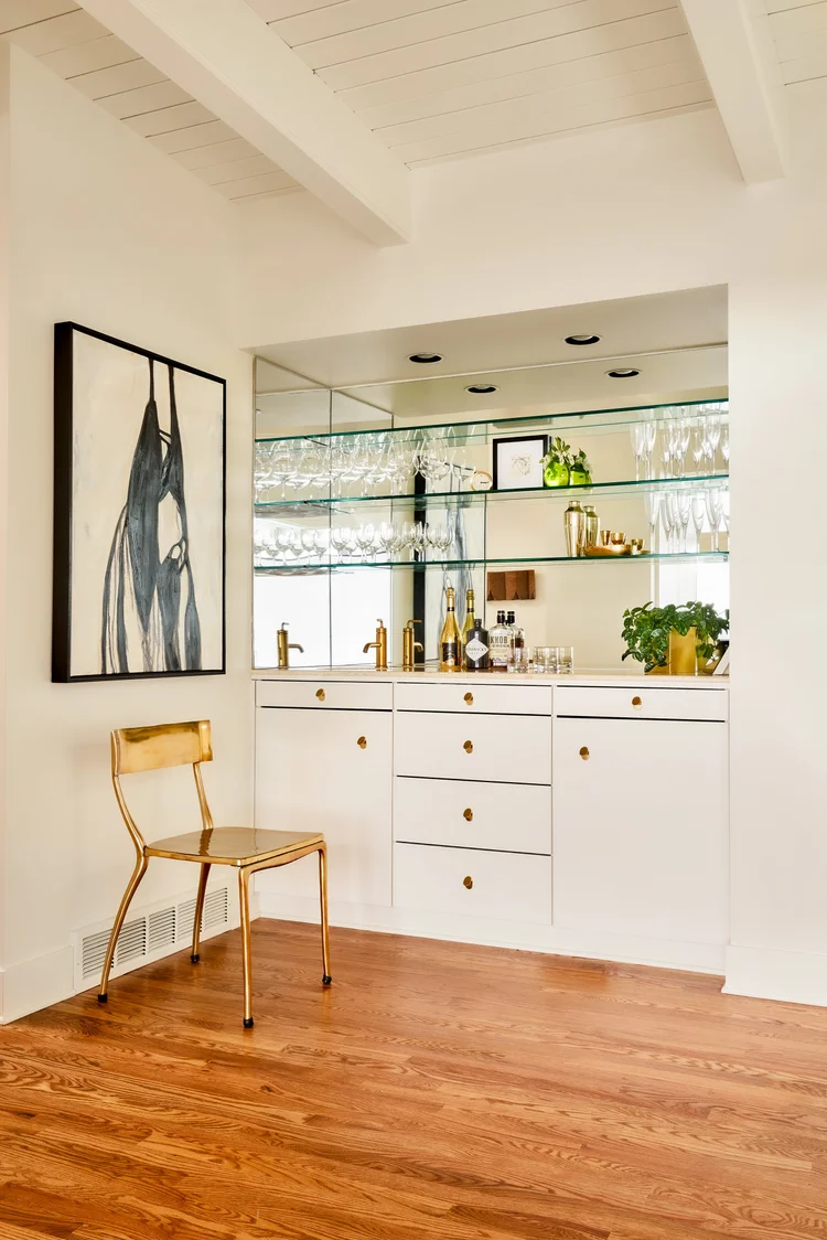 Mirrors and lamps, together, to move light. I use mirrors to bounce light from one room to another, to deepen an interior wall, or to quietly lift perceived height. A mirror tucked behind a lamp, at the back of a bookcase, or within a gallery wall does not read as “a mirror moment.” It reads as atmosphere.